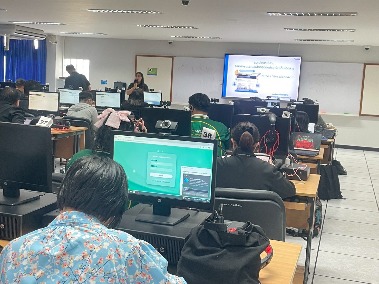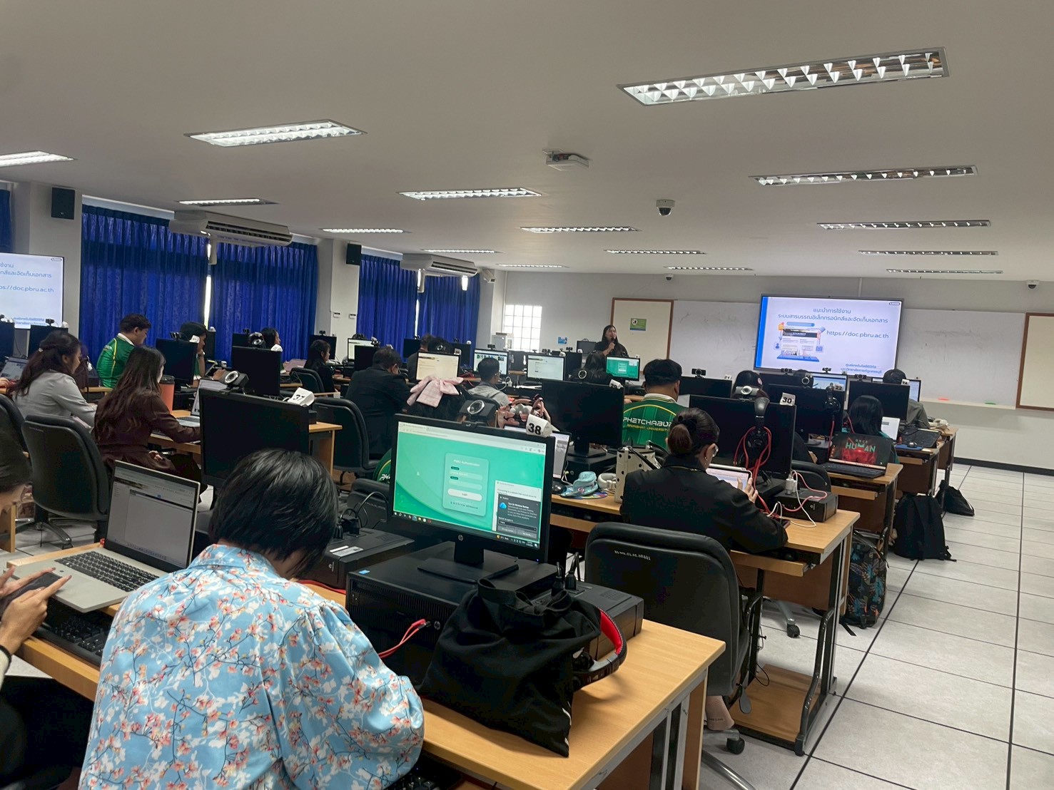 ศูนย์เทคโนโลยีดิจิทัล โดยฝ่ายวิเคราะห์และพัฒนาระบบและงานบริหารงานทั่วไป ได้ดำเนินการจัดอบรมเชิงปฏิบัติการเรื่อง “การใช้งานระบบสารบรรณอิเล็กทรอนิกส์ (e-Doc)” เพื่อส่งเสริมให้อาจารย์และบุคลากรของโรงเรียนสาธิตฯ สามารถใช้งานระบบรับ–ส่งหนังสือราชการผ่านระบบอิเล็กทรอนิกส์ได้อย่างถูกต้อง มีประสิทธิภาพ และสอดคล้องกับแนวทางการพัฒนามหาวิทยาลัยสู่ Digital University