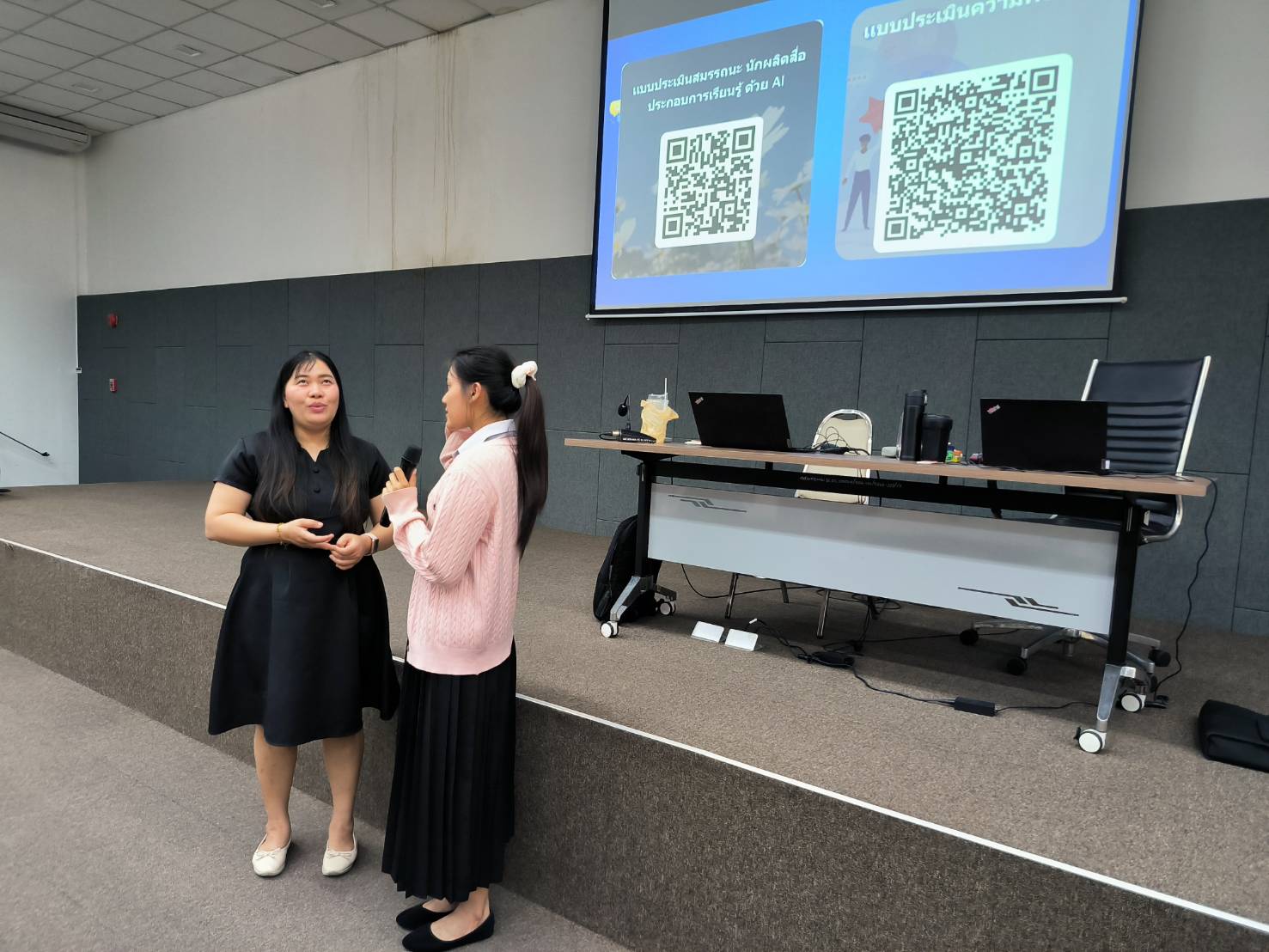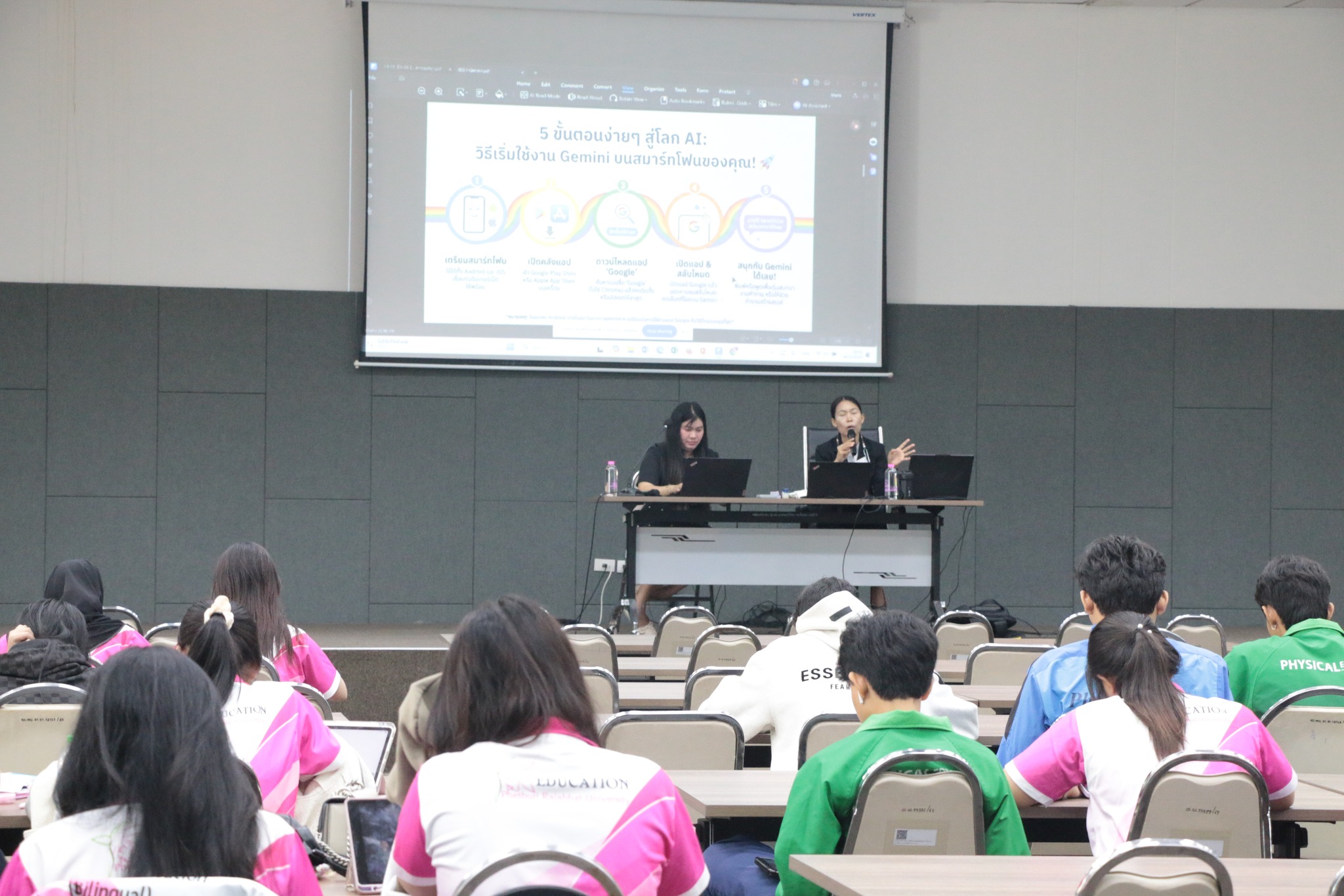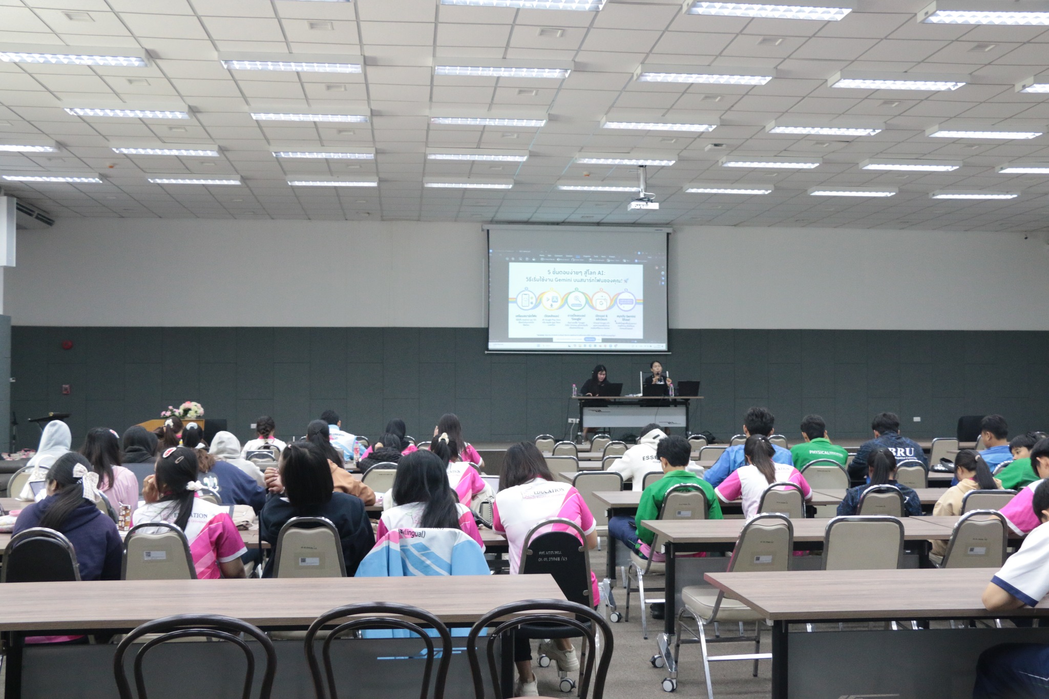 ในการนี้ ศูนย์เทคโนโลยีดิจิทัลได้ถ่ายทอดองค์ความรู้ด้านการประยุกต์ใช้ปัญญาประดิษฐ์ (AI) เพื่อการผลิตสื่อการเรียนรู้ยุคใหม่อย่างเป็นระบบ ควบคู่กับการฝึกปฏิบัติจริง เพื่อเสริมสร้างทักษะสำคัญให้แก่นักศึกษาในการออกแบบและพัฒนาสื่อการสอนที่ทันสมัย สอดคล้องกับบริบทการเรียนรู้ในศตวรรษที่ 21 บรรยากาศการอบรมเป็นไปอย่างเข้มข้นและสร้างสรรค์ ผู้เข้าร่วมให้ความสนใจและมีส่วนร่วมในกิจกรรมอย่างต่อเนื่อง สะท้อนถึงศักยภาพของศูนย์เทคโนโลยีดิจิทัลในการเป็นหน่วยงานหลักด้านการขับเคลื่อนบริการวิชาการและการพัฒนาทักษะดิจิทัลของมหาวิทยาลัยอย่างมีประสิทธิภาพ