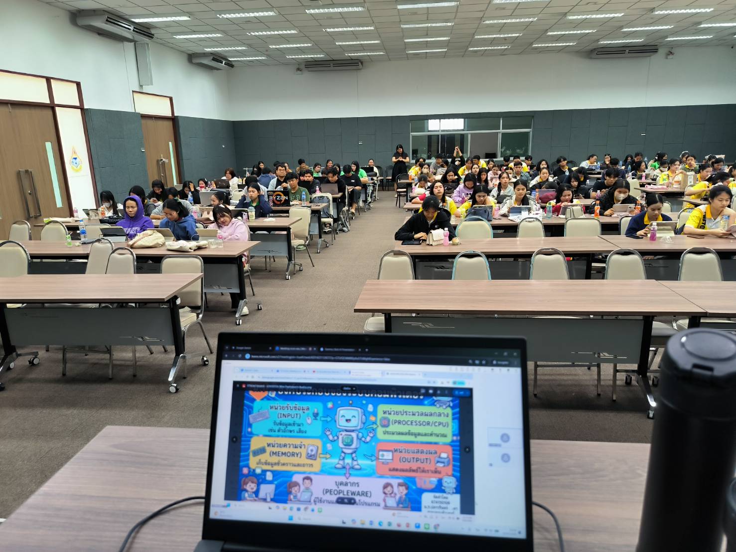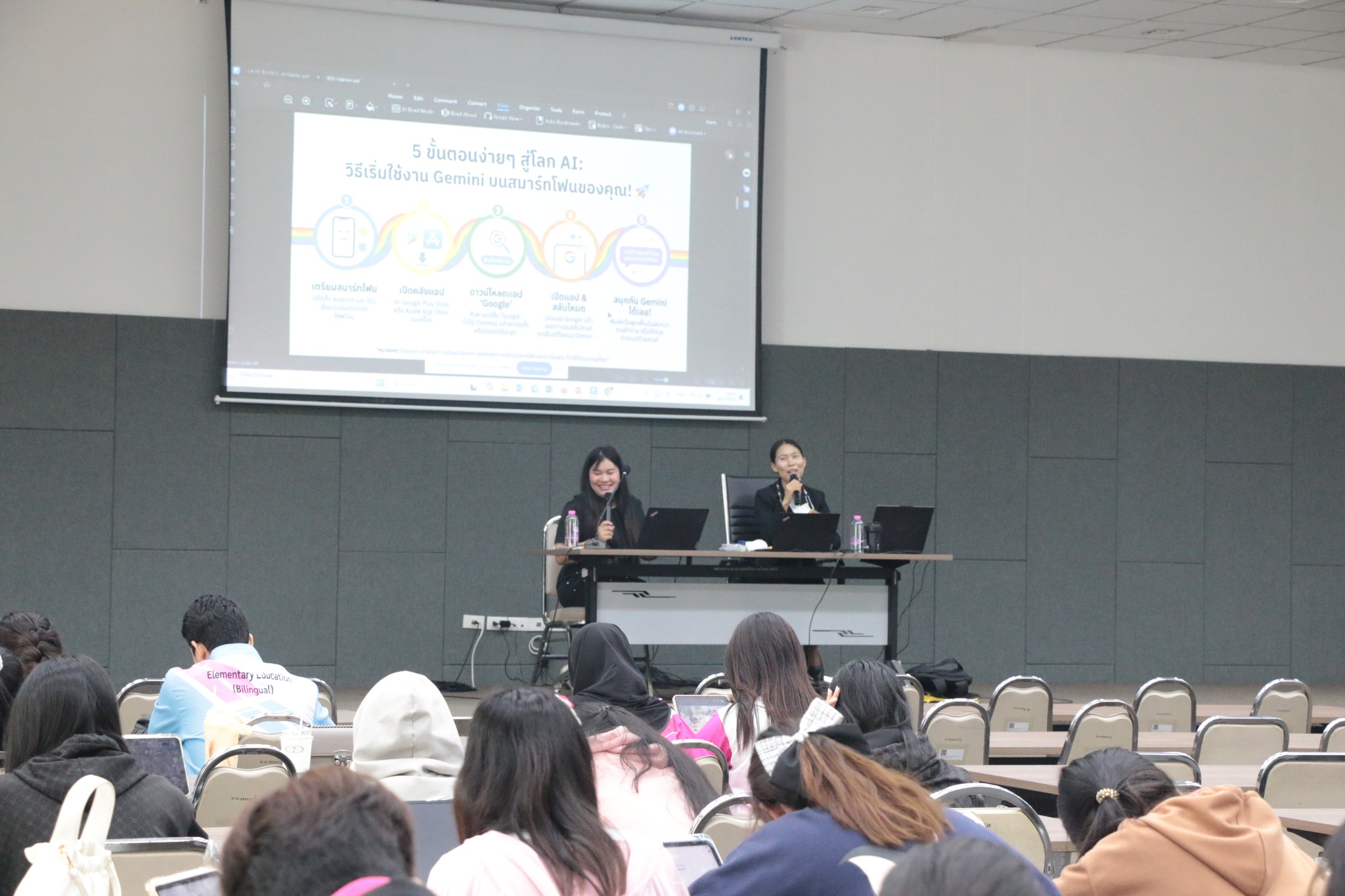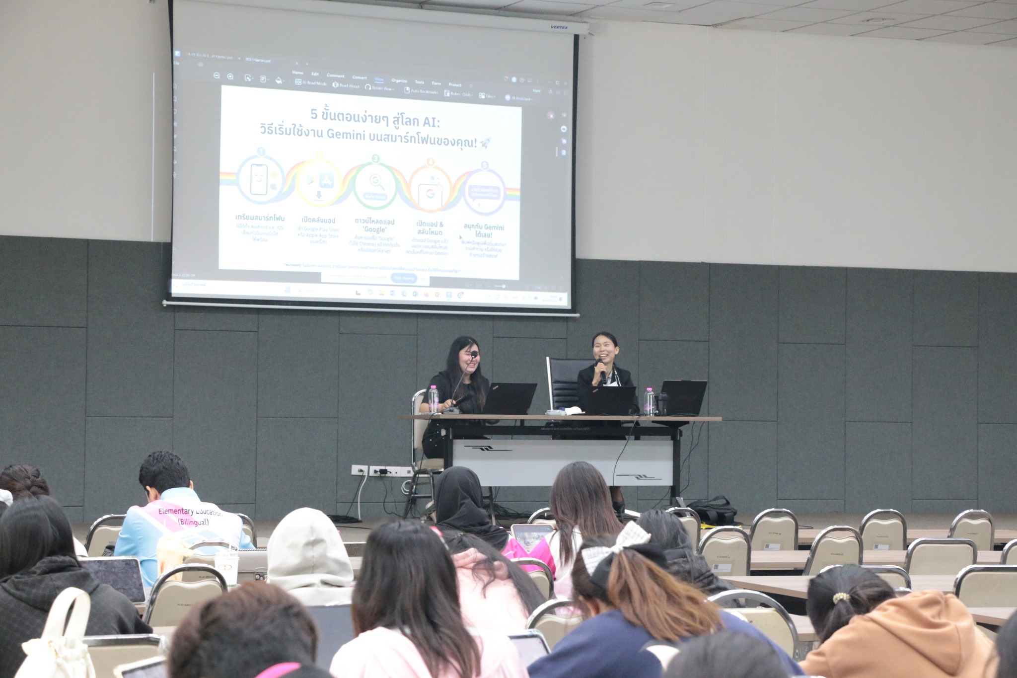 ในการนี้ ศูนย์เทคโนโลยีดิจิทัลได้ถ่ายทอดองค์ความรู้ด้านการประยุกต์ใช้ปัญญาประดิษฐ์ (AI) เพื่อการผลิตสื่อการเรียนรู้ยุคใหม่อย่างเป็นระบบ ควบคู่กับการฝึกปฏิบัติจริง เพื่อเสริมสร้างทักษะสำคัญให้แก่นักศึกษาในการออกแบบและพัฒนาสื่อการสอนที่ทันสมัย สอดคล้องกับบริบทการเรียนรู้ในศตวรรษที่ 21 บรรยากาศการอบรมเป็นไปอย่างเข้มข้นและสร้างสรรค์ ผู้เข้าร่วมให้ความสนใจและมีส่วนร่วมในกิจกรรมอย่างต่อเนื่อง สะท้อนถึงศักยภาพของศูนย์เทคโนโลยีดิจิทัลในการเป็นหน่วยงานหลักด้านการขับเคลื่อนบริการวิชาการและการพัฒนาทักษะดิจิทัลของมหาวิทยาลัยอย่างมีประสิทธิภาพ
