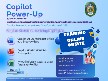 ศูนย์เทคโนโลยีดิจิทัล ขอเชิญบุคลากรมหาวิทยาลัยราชภัฏเพชรบุรีทุกท่านร่วมอบรมเชิงปฏิบัติการ Copilot Power-Up